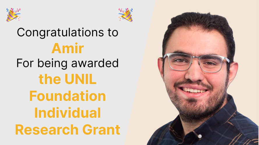 We are thrilled to celebrate Amir’s achievement of being awarded the UNIL Foundation Individual Research Grant to support studies in his PhD research. This remarkable recognition highlights his commitment and academic excellence.