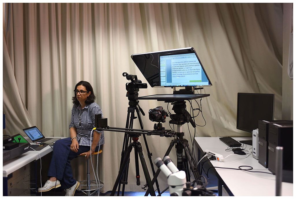 Ainsi, Franco Taroni (professeur), Tacha Hicks Champod (chargée de projets), Alex Biedermann (professeur associé) et Christophe Champod (professeur) travaillent avec Catherine El Bez (dicastère Enseignement et Affaires étudiantes de la direction et Formation continue UNIL-EPFL) et le réalisateur David Monti (tout à droite).