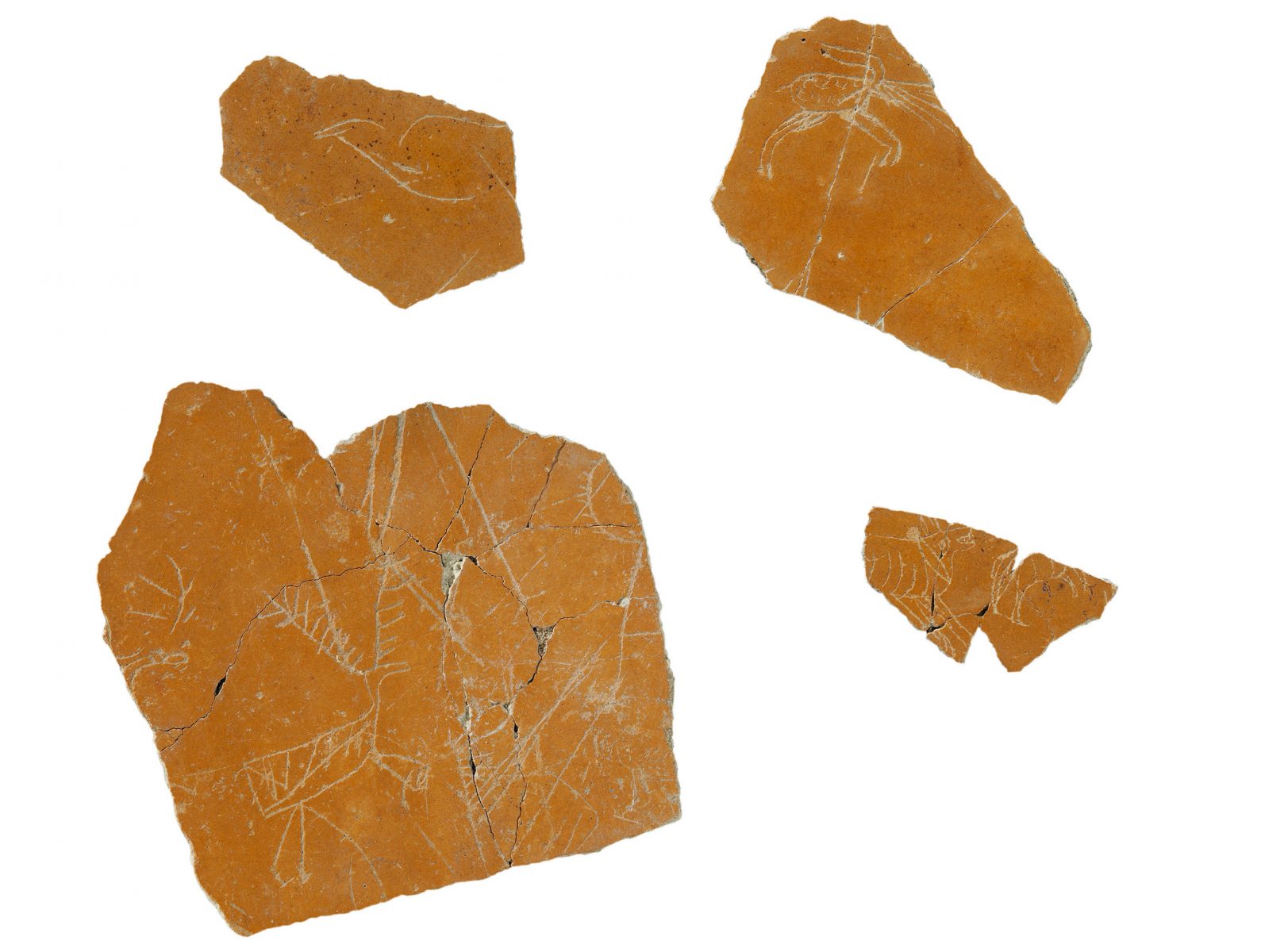 Plus de 600 graffiti, pour la plupart fragmentaires, sont à ce jour documentés (relevés, photographies) pour être intégrés dans un catalogue. Il s’agit de noms propres, de dédicaces religieuses, de sentences, de chiffres, de dessins figurés ou géométriques.