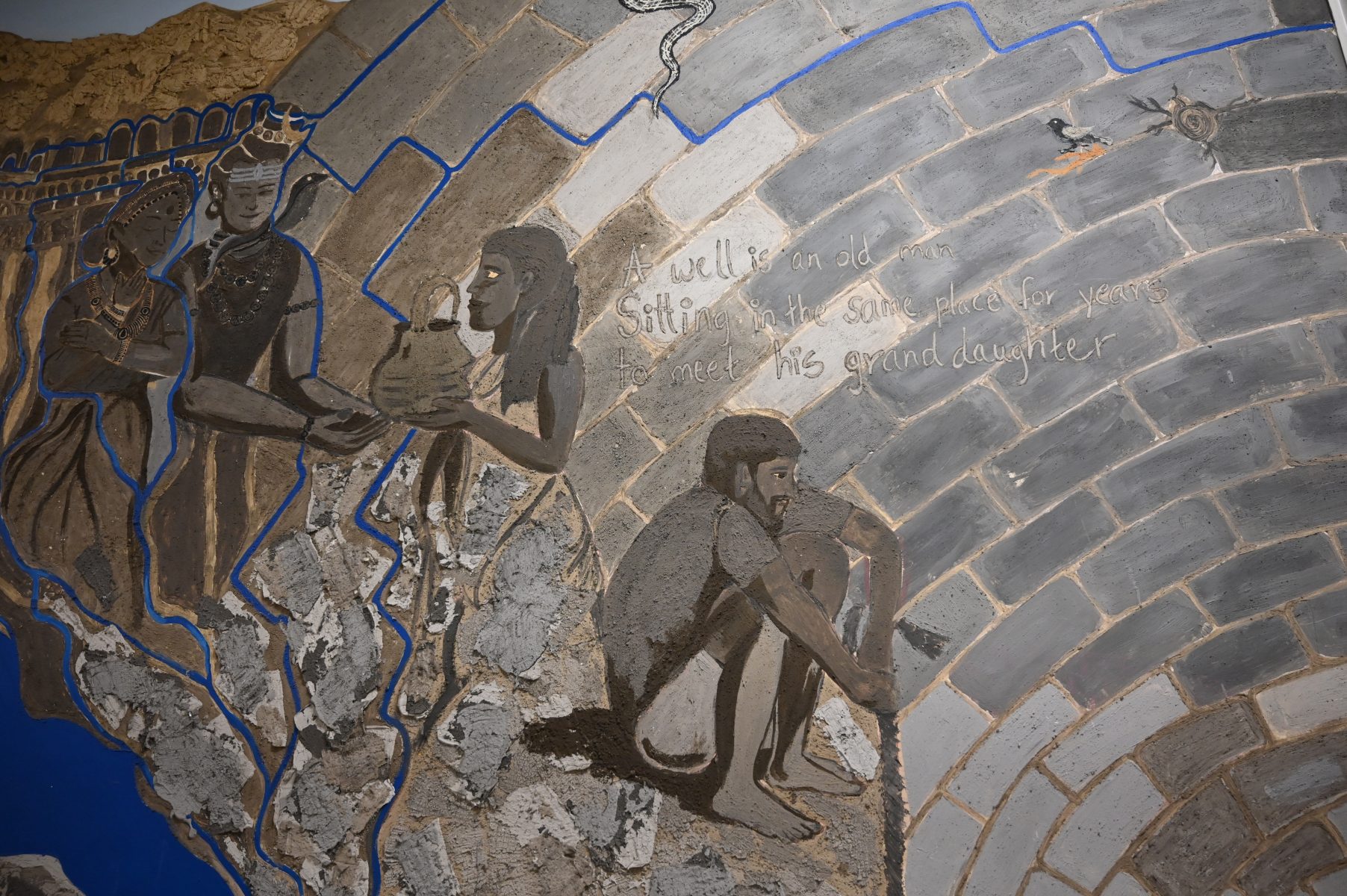 Au milieu de son explication, Shankar a ouvert une trappe dans la grille et a enlevé sa chemise. Intriguée, l’une d’entre nous interpelait notre guide pour lui demander s’il allait plonger. « Évidement ! » répondait Rackshita, « C’est un Welldigger ». Une fois dans l’eau, on pouvait le voir enlever les différentes plantes qui poussaient entre les pierres du murs. Rackshita nous expliquait que c’était un des nombreux savoirs que les Welldiggers possédaient : quelles plantes allaient être favorables ou nocives pour une eau pure, et parmi elles lesquelles risquaient de fragiliser le puits par leurs racines. Après ce désherbage, Shankarremontait sans problèmes sur la paroi aux prises pourtant invisibles. En plus de ces tâches d’entretien et de vérification, il fallait aussi vider le puits pour que l’eau puisse être consommée. Cette impressionnante tâche était réalisée uniquement au moyen d’une sorte de grue en bois, munie d’un seau et fonctionnant à la force des bras. L’eau serait ensuite filtrée et vérifiée par Rackshita et ses collègues pour qu’elle soit conforme aux standards.