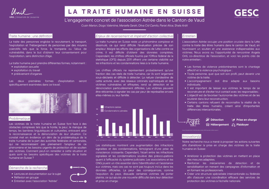 Catégories Posters La traite humaine en Suisse ; L’engagement concret de l’association Astrée dans le Canton de Vaud Auteur de l’article Par Eléonore Petit Date de l’article 5 septembre 2023 Étiquettes GESC, Lutte, Sécurité, Suisse, Traite humaine, Vaud ← Vivre à l’ère numérique ; Utilisation problématique d’Internet et du smartphone → L’éco-anxiété : un moteur d’action ; Comment réguler l’éco-anxiété afin de la transformer en action environnementale