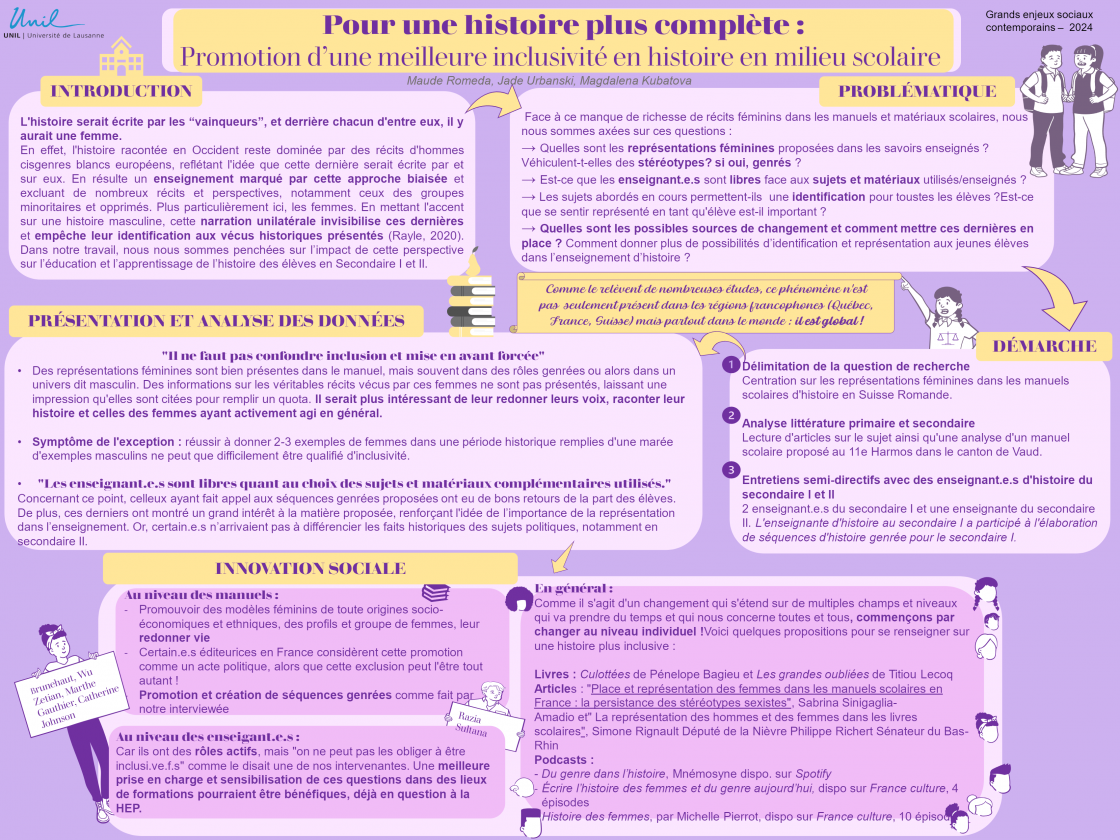 Catégories Posters Pour une histoire plus complète: Promotion d’une meilleure inclusivité en histoire en milieu scolaire Auteur de l’article Par Eléonore Petit Date de l’article 22 octobre 2024 Étiquettes éducation, Femmes, GESC, Histoire, Scolarité ← Obtenir justice face aux violences sexuelles → Usage de drogues dures dans l’espace public: La toxico-dépendance ne s’endort pas la nuit
