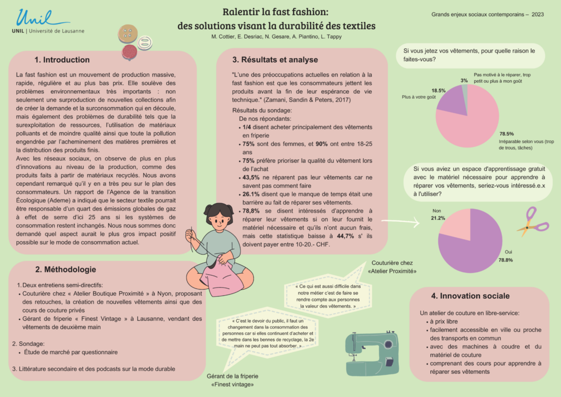 Catégories Posters Ralentir la fast fashion : des solutions visant la durabilité des textiles Auteur de l’article Par Eléonore Petit Date de l’article 5 septembre 2023 Étiquettes Durabilité, environnement, Fashion, GESC, Habits ← Who cares ? Comment rééquilibrer la balance entre rendement et humanité dans les soins → Mieux trier pour mieux valoriser ; le cercle vertueux de la valorisation des déchets organiques