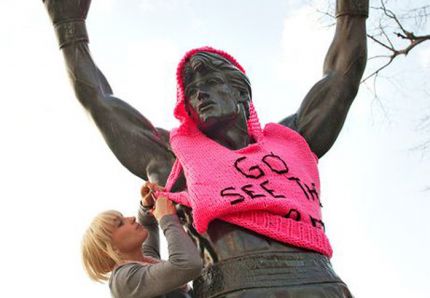 THE bronze statue of Rocky near the Philadelphia Museum of Art irked Jessie Hemmons. She found the statue too big, too macho and too touristy, so last month Ms. Hemmons, a 24-year-old artist, bombed him. With pinkish yarn.