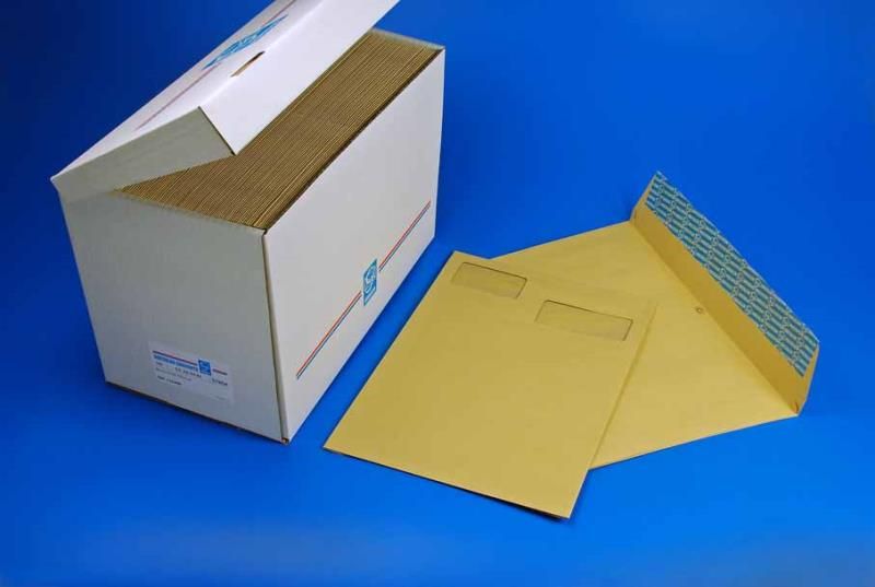 Enveloppe C4 120g/m² kraft brun 2 fenêtres, soufflet de 20mm