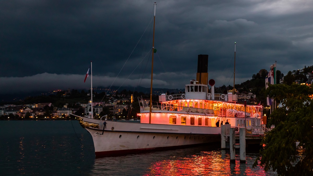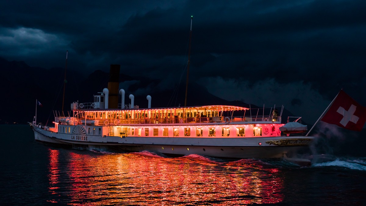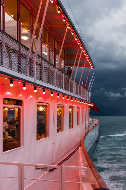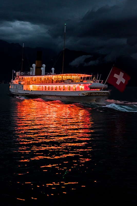 A noter que les photos CGN, disponibles sur le site www.cgn02.ch, sont le fait de Monsieur Jean Vernet qui couvre les sorties des bateaux Belle Epoque: celles de notre soirée, prises entre Vevey et Montreux, nous montrent dans le bateau magnifiquement éclairé !