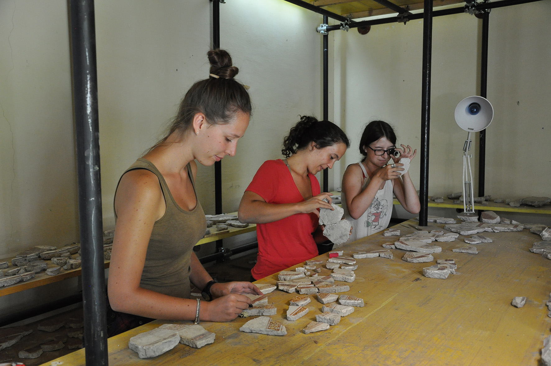 Grâce à un partenariat entre le Parco Archeologico di Pompei et l’Université de Lausanne signé en 2018, les étudiants ont la possibilité de perfectionner leurs connaissances en peinture murale romaine en travaillant sur des fragments provenant de la Maison des peintres au travail. Ce stage est organisé par le prof. Michel Fuchs et Alexandra Spühler.